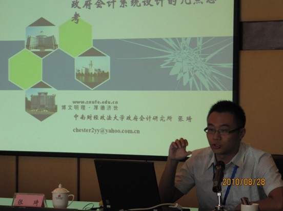 政府及非营利组织会计专业委员会委员、中南财经政法大学政府会计研究所所长张琦副教授作了“政府会计系统设计的几点思考”的学术报告,建议将政府财务会计系统和预算会计系统进行适当分离,并就如何建立政府财务会计系统和改进现行预算会计提出了具体建议。