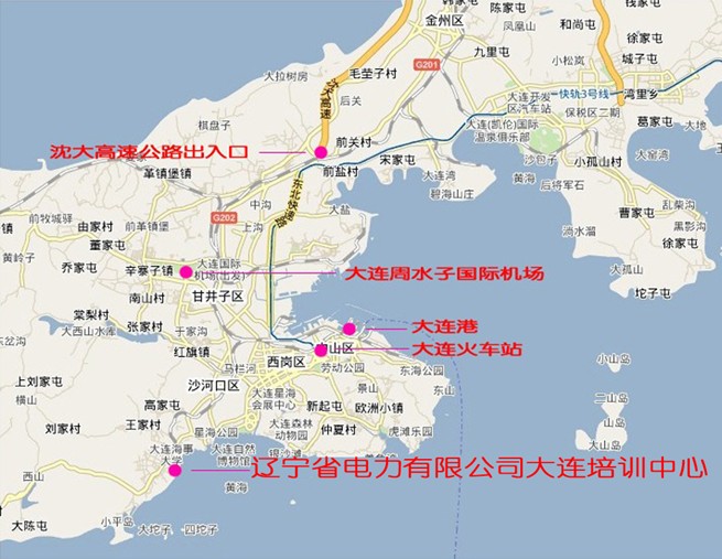 2.火车站:火车站——中山路——星海广场——黑石礁——海事大学——辽宁大连培训中心(计程车约30元,耗时约30分钟)。
