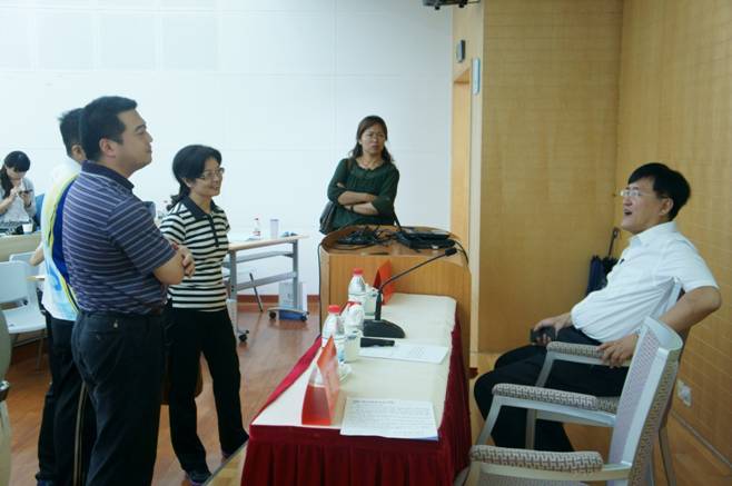深圳市会计学会《深圳财政与会计研究》副主编谢路一聆听学员发言,并进行交流。