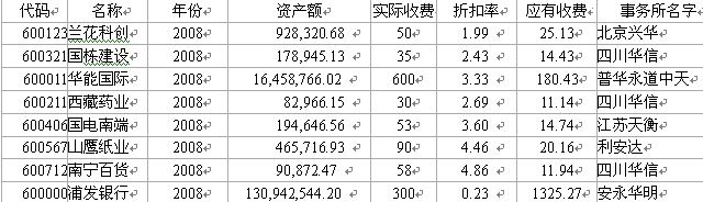 沪市这几家,也有四大的客户,其收费折扣率,也未见比国内所就高到哪里去。但即便这样,它们的收费,也还是最常被人拿来说道的。是的,如华能国际,它的08年国内审计费是600万人民币,付给普华永道中天,同时也许是为了补充审计吧,付给国外审计师的是1792万,由罗兵咸永道收取。类似的还有浦发银行,它给国内和国外审计师的费用分别是300万。
