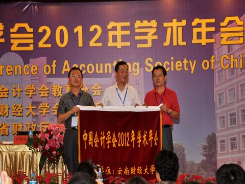 7月7日至8日,中国会计学会2012年学术年会在昆明召开。本次会议由中国会计学会教育分会主办,云南财经大学承办,云南省财政厅、云南省会计学会协办。会议邀请了美国会计学会会长Gregory Waymire、韩国会计学会会长安泰植,来自美国哥伦比亚大学、南加州大学等,日本爱知学院大学、名古屋外国语大学等,韩国首尔大学、中央大学、崇实大学、庆熙大学等,台湾政治大学、北京大学、中国人民大学、上海财经大学、厦门大学、南开大学、南京大学、上海交通大学、武汉大学等国内外150余所大学的280余位会计学界知名专家、学者出席了会议,专家、学者围绕“新经济形势下会计与财务研究”展开一系列活动。